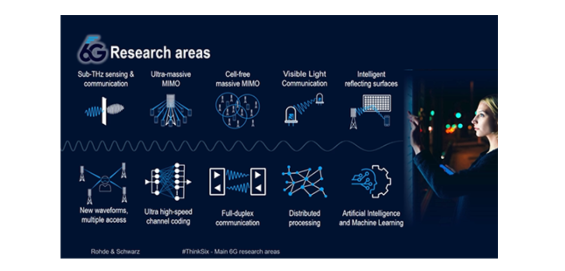 同時,R&S深度參與6G相關技術并推動標準的制定和落地,為6G相關技術的預研以及早期驗證添磚加瓦。目前6G研究的關鍵技術包括Sub THz通信與感知、智能超表面、可見光通信、新空口,以及機器學習與人工智能等。