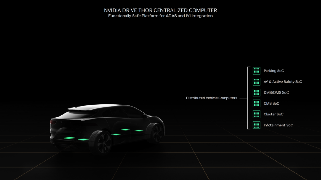 不過今年10月,英偉達推出的芯片NVIDIA Drive Thor,直接把標(biāo)桿又拉高了一個級別,這款超級芯片可實現(xiàn)最高 2000TOPS AI 算力以及 2000 TFLOPS 浮點算力。據(jù)官方介紹,NVIDIA Drive Thor是第一個使用集成推理Transformer引擎的自動駕駛汽車平臺,借助Transformer引擎,它可將 Transformer 深度神經(jīng)網(wǎng)絡(luò)的推理性能提升9倍,這對于支持與自動駕駛相關(guān)的、龐大且復(fù)雜的AI工作負(fù)載至關(guān)重要。
