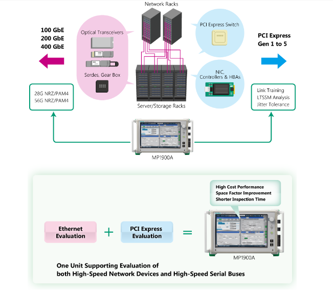 MP1900A支持應(yīng)用100 GbE / 200 GbE / 400 GbE / 800 GbECEI-25G / 28G / 56G / 112G,InfiniBand EDR / HDR,光纖通道,PCI Express Gen1 / 2/3/4/5,Thunderbolt 1/2/3USB3 .2 / 4 Type C,SAS-3 / -4,DP1.4,光模塊,SERDES,AOC,高速互連。