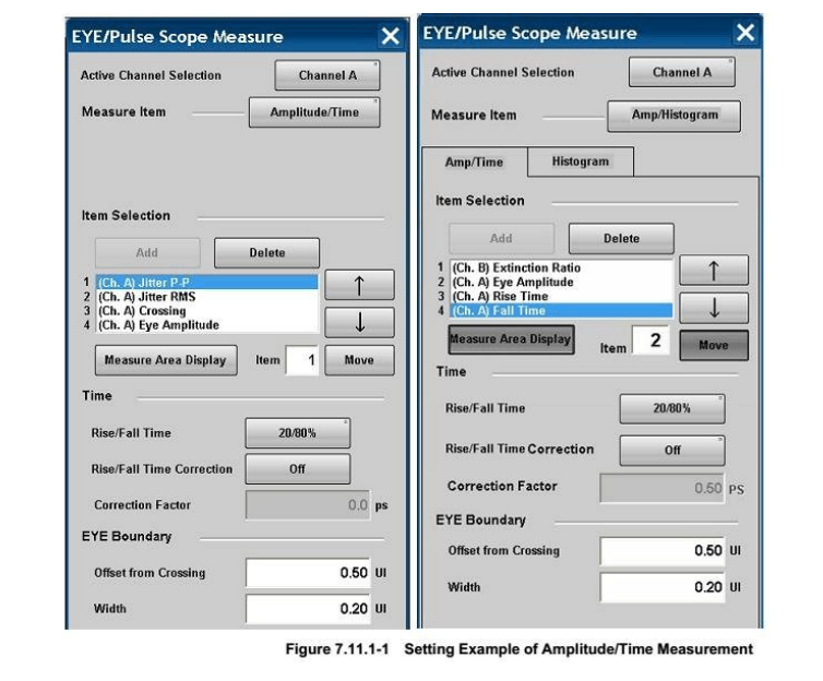 在眼圖顯示窗口 點擊 Measure 打開眼圖測試參數及眼圖模板余量等相關設置( 注意要選擇相對于的