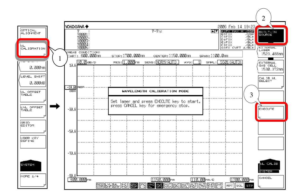 ③按 EXECUTE 軟鍵,執(zhí)行波長(zhǎng)校準(zhǔn)。 校準(zhǔn)結(jié)束后,返回之前得畫面。