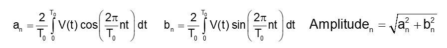 當我們有這種人為重復的波形時,我們可以應用DFT的功率來數(shù)學計算頻譜中的每個頻率分量。以下是用于計算每個頻率分量的幅度和相位的公式: