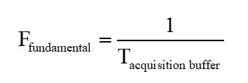 在計算的頻譜中,僅顯示離散頻率值。最低頻率分量稱為基波。它是我們可以放入采集緩沖時間的最低頻率正弦波。這個最低頻率正弦波的周期P是總采集時間T。
