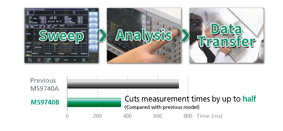 • 無源器件測量速度0.2秒以下(5nm)、解析時間短;