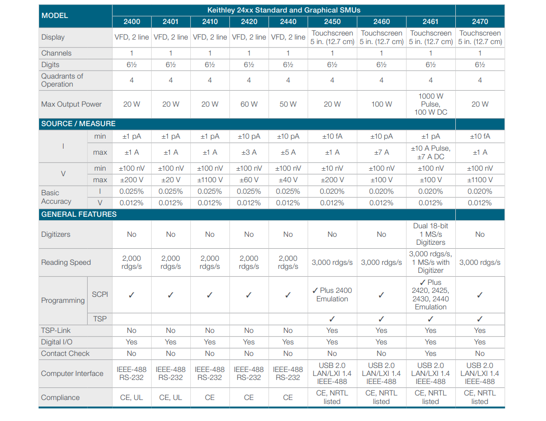? 節(jié)省空間和成本:Keithley 2450 SMU 可以替代傳統(tǒng)的多個(gè)儀器組合,如電源、萬(wàn)用表、負(fù)載等,從而節(jié)省了實(shí)驗(yàn)室或生產(chǎn)線上的空間和成本。您只需要一臺(tái) Keithley 2450 SMU 就可以完成各種源測(cè)量任務(wù),無(wú)需頻繁地切換或連接不同的儀器。