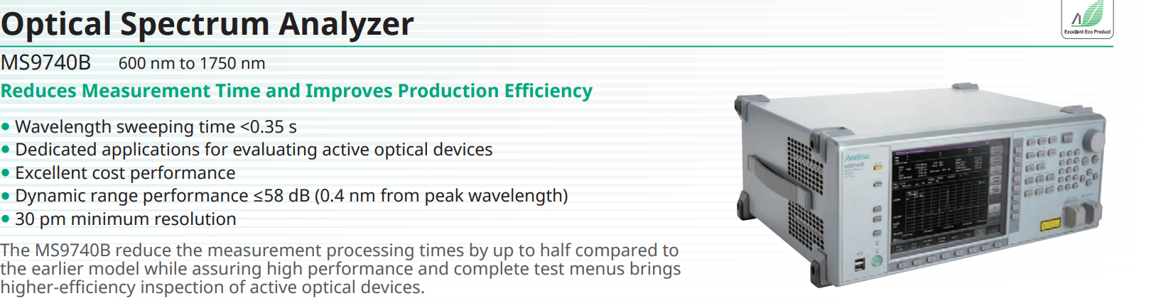 安立 Anritsu MS9740B 是一款高性能的光譜分析儀,可以用于測量光纖的偏振模色散(PMD)。PMD 是一種光纖的傳輸特性,它會影響高速光通信系統(tǒng)的性能和穩(wěn)定性。為了保證光纖的質(zhì)量和可靠性,您需要定期對光纖進行 PMD 測試。