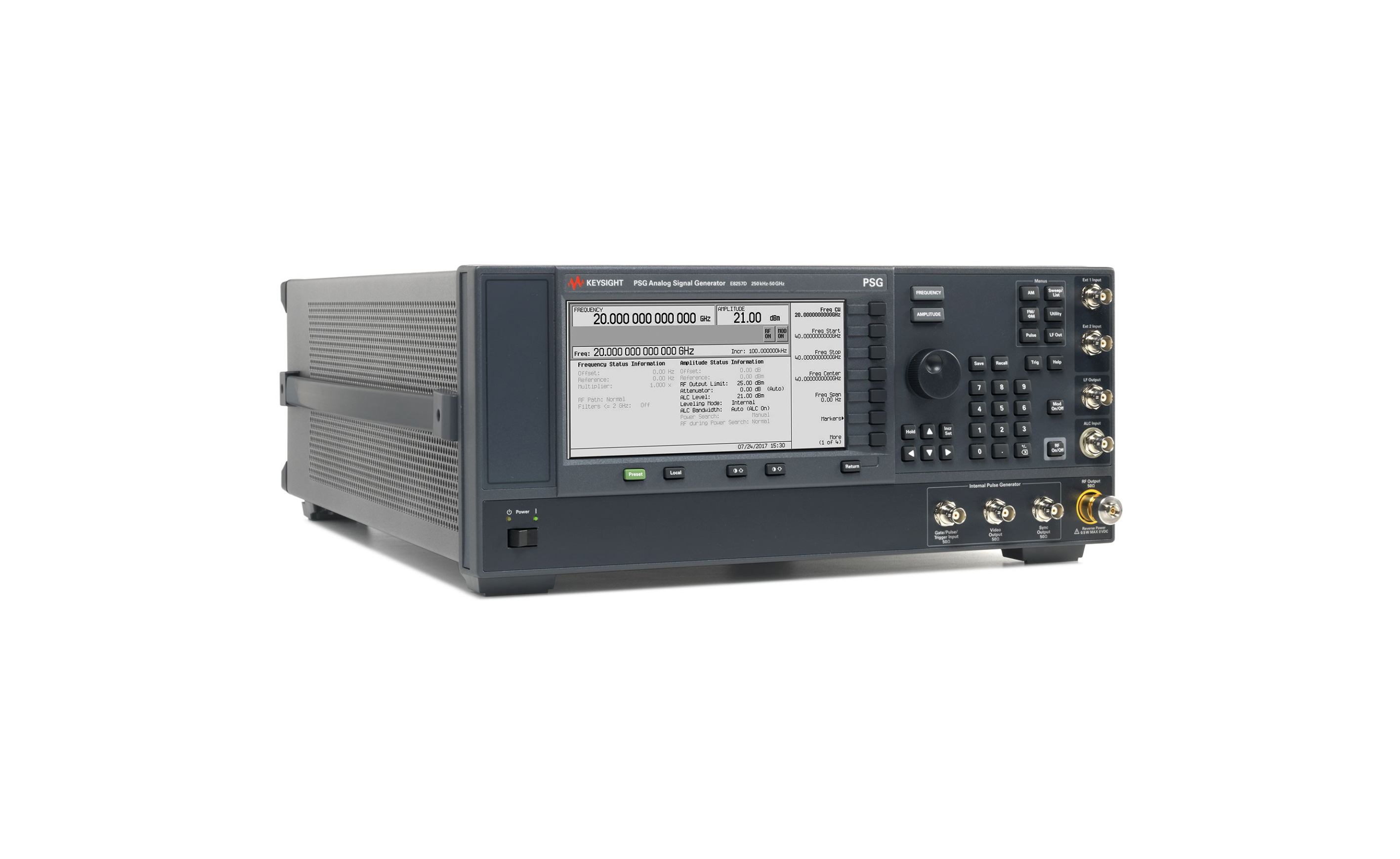 在眾多的信號發(fā)生器中,E8257D PSG 模擬信號發(fā)生器是一款具有計量級的頻率和電平準確度以及出色的失真和雜散特性的儀器,能夠滿足非常嚴苛的測試要求。