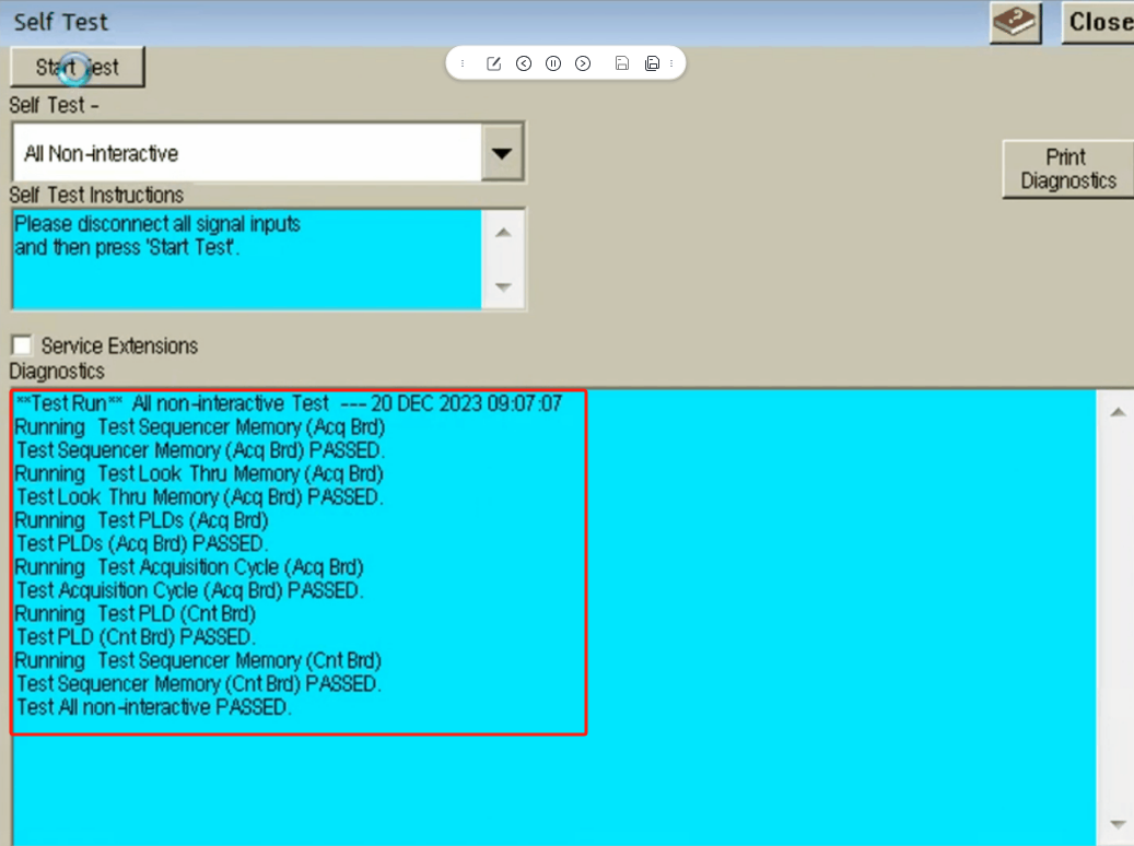 2.選擇ALL Non-interactive,看到各項目顯示PASSED,說明儀器基礎(chǔ)功能無問題。