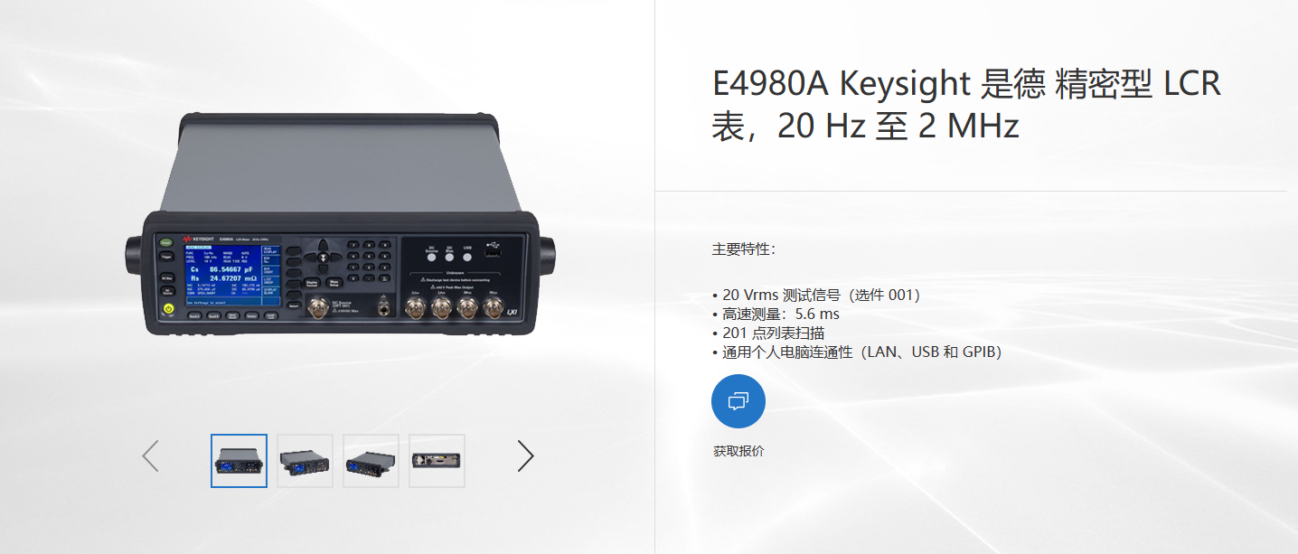 Keysight E4980A不僅適用于一般的研發(fā)和制造測試,還能在多種頻率范圍內(nèi)提供最佳的精度、速度和通用性,是組件與材料研發(fā)以及生產(chǎn)測試的理想工具。