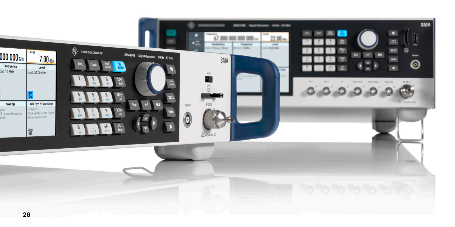 • 8 kHz 至 67 GHz:這是SMA100b信號(hào)發(fā)生器的最高頻率范圍,適用于高頻毫米波測(cè)試。
