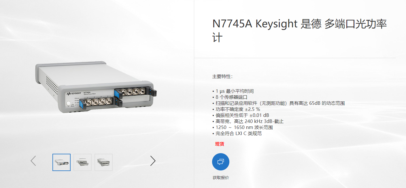 N7745A光功率計在光通信、光纖傳感、激光加工、科學(xué)研究和工業(yè)生產(chǎn)等領(lǐng)域都展現(xiàn)出了其獨特的價值和重要性。隨著技術(shù)的不斷進(jìn)步,其應(yīng)用領(lǐng)域有望進(jìn)一步拓展。