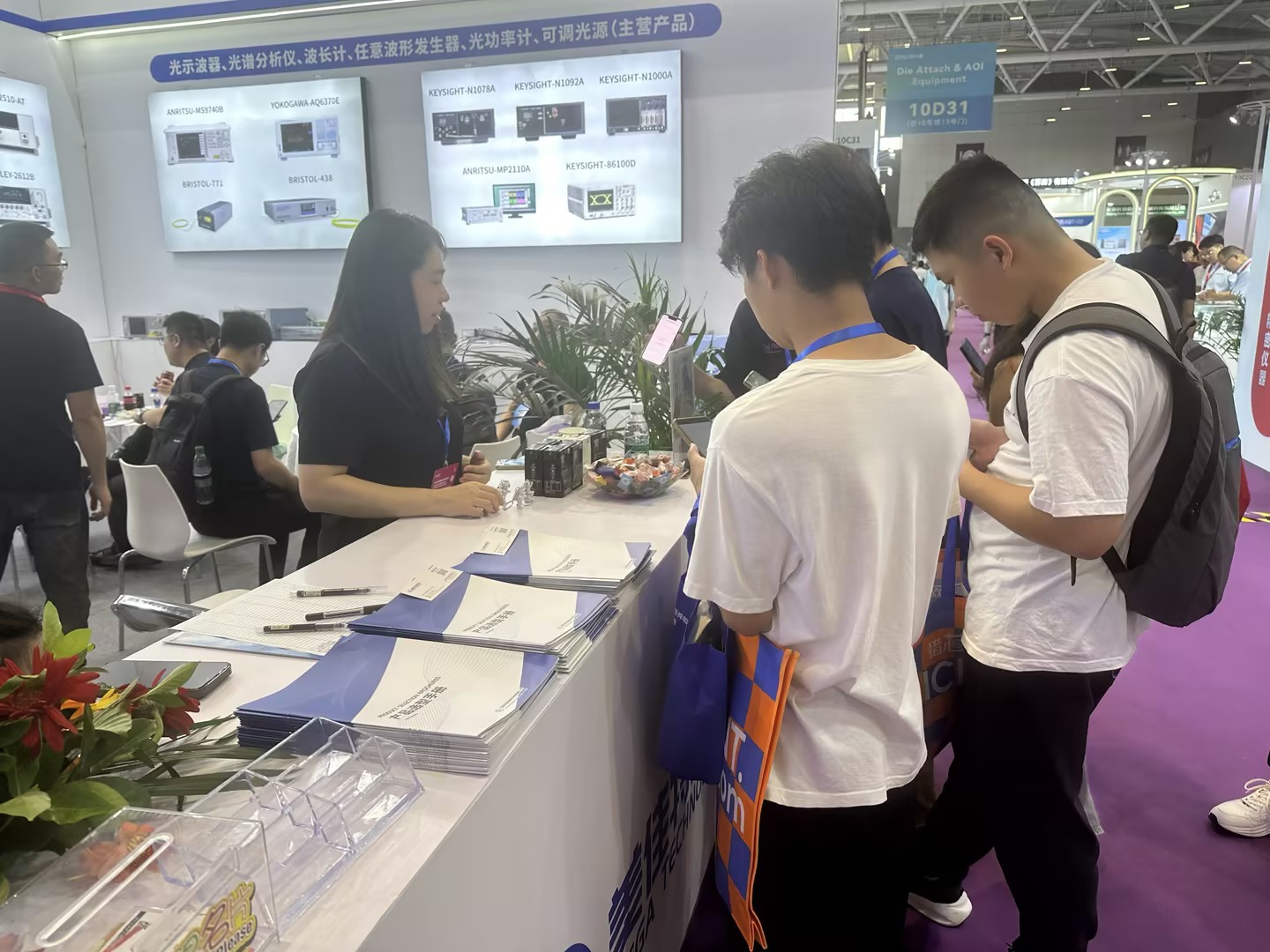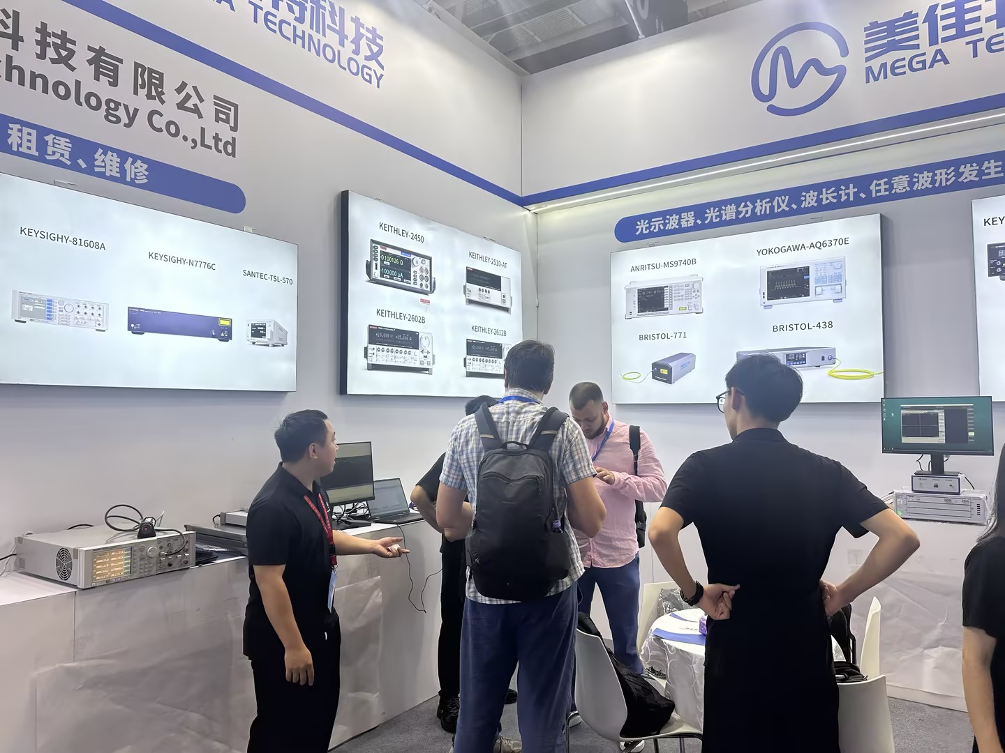 主要展示了是德、安立、R&S、橫河、BRISTOL等品牌的光通訊測試儀器