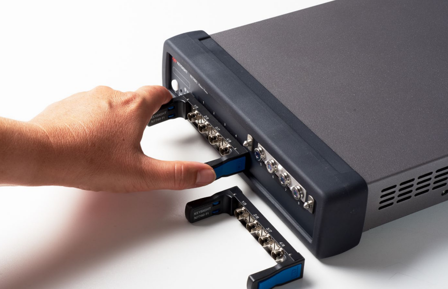 N7744C 同樣也采用了深受信賴的 N7740 光纖連通性概念,通過配有快速鎖定卡扣的四路光纖適配器進(jìn)行連接。 即使儀器正在測量其他器件,可以輕松地將被測器件連接到四路光纖適配器。
