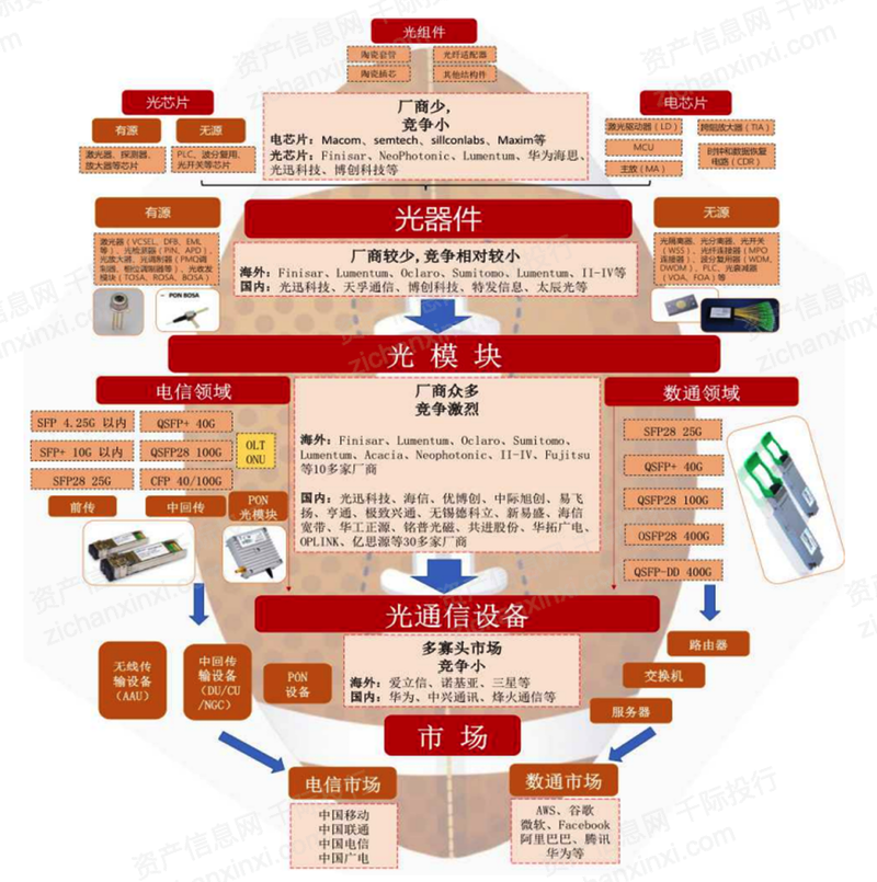 圖:橄欖型格局分布的光通信產(chǎn)業(yè)鏈