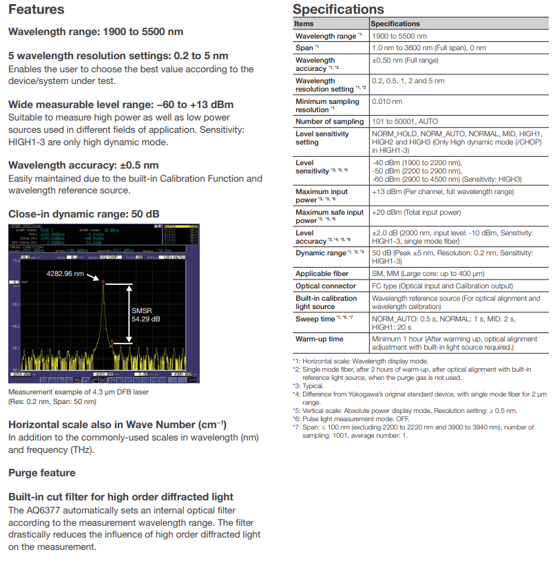 AQ6377 YOKOGAWA 橫河 光譜分析儀 1900 - 5500 nm AQ6377 YOKOGAWA 橫河 光譜分析儀 1900 - 5500 nm